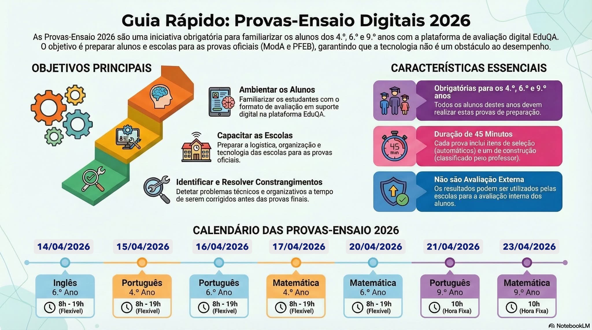 Antes da realização das Provas ModA e das Provas Finais irão realizar-se Provas-ensaio (em abril)